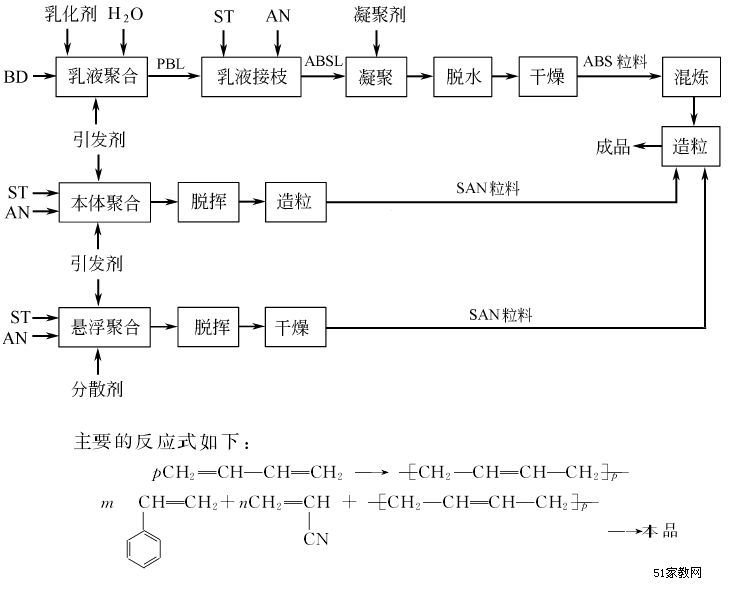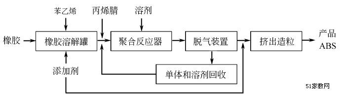 | 生產(chǎn)方法及其他: | 典型的乳液接枝摻混法ABS生產(chǎn)工藝 流程如下。 丙烯腈的用量20%~30%,丁二烯6%~35%,苯乙烯45%~70%。聚合溫度約為50~100℃,接枝溫度為60~90℃,凝聚時(shí)溫度為85~95℃。 連續(xù)本體法ABS樹脂生產(chǎn)工藝過程 將增韌橡膠溶于單體和少量溶劑中進(jìn)行接枝聚合,隨著聚合反應(yīng)的進(jìn)行,形成溶解于單體中的接枝橡膠和SAN兩個(gè)獨(dú)立相溶液。由于聚合反應(yīng)的進(jìn)一步加深,發(fā)生相轉(zhuǎn)變,SAN成為連續(xù)相,橡膠粒子形成并分離出來,分散在SAN相中。通過相轉(zhuǎn)變獲得適當(dāng)?shù)南鹉z粒徑和界面相容性。反應(yīng)后期,進(jìn)行適度交聯(lián)以增加橡膠粒子的強(qiáng)度,然后脫揮、造粒,得到ABS樹脂產(chǎn)品。連續(xù)本體法ABS生產(chǎn)工藝程如下: ABS樹脂的合成工藝大致可以分為混煉法和接枝共聚法兩種。接枝共聚法可以分為不均勻接枝法和均勻接枝法。不均勻接枝法通常指乳液聚合法,而均勻接枝法則包括本體聚合、懸浮聚合和本體懸浮聚合等方法 |