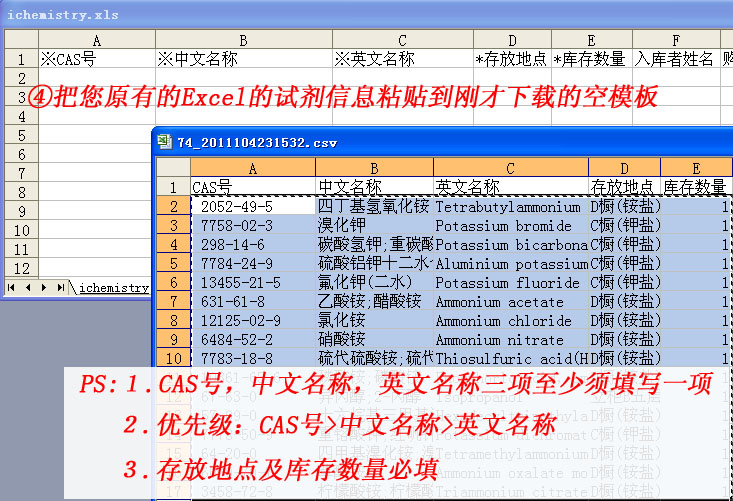CAS號(hào)查詢 > 試劑庫 >把試劑庫從Excel搬到愛化學(xué)步驟